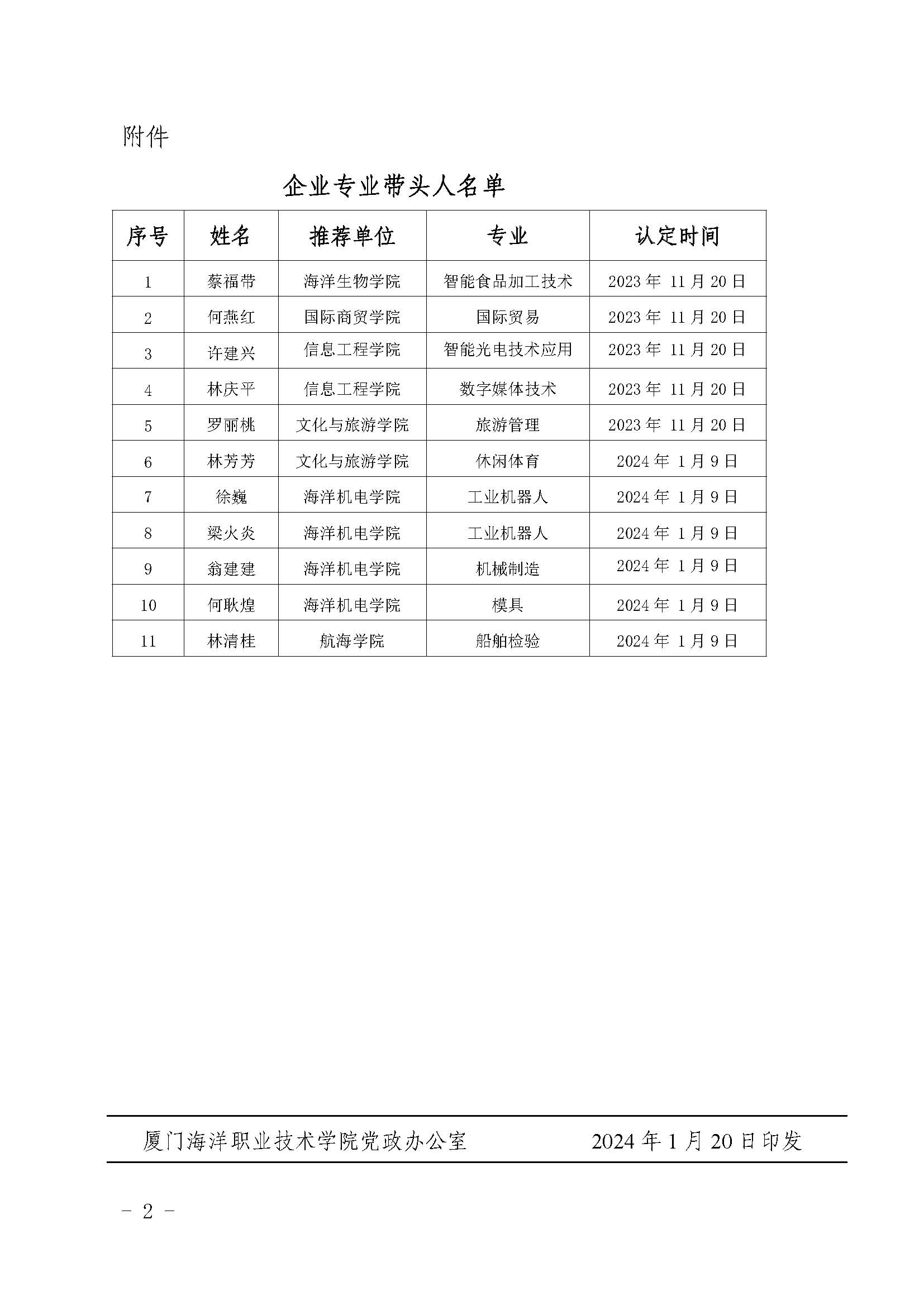 1月19日,廈門海洋職業(yè)技術(shù)學(xué)院公布企業(yè)專業(yè)帶頭人認(rèn)定人員名單的通知,根據(jù)《廈門海洋職業(yè)技術(shù)學(xué)院專業(yè)帶頭人和骨干教師選拔與管理暫行辦法(試行)》(廈海職院〔2018〕28號)文件精神,認(rèn)定鳳凰創(chuàng)壹董事長林慶平等11人為企業(yè)專業(yè)帶頭人,任期三年。