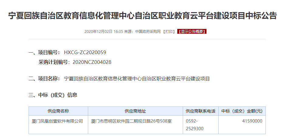 4159萬元!鳳凰創(chuàng)壹中標寧夏職業(yè)教育云平臺項目