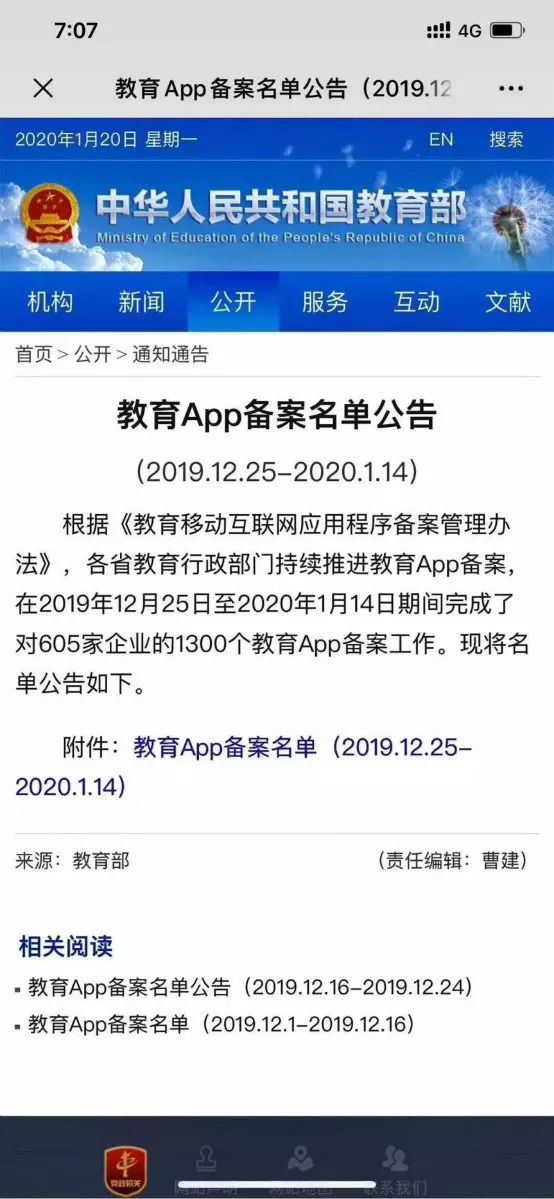 2019年11月,教育部辦公廳印發(fā)《教育移動(dòng)互聯(lián)網(wǎng)應(yīng)用程序備案管理辦法》,要求教育企業(yè)在2020年1月31日前完成備案,一省備案,全國有效。   2020年1月20日......